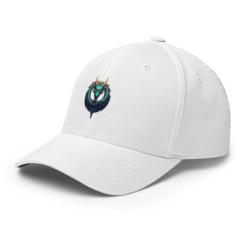 Fitted, six-panel, mid-profile cap is structured with buckram backing.